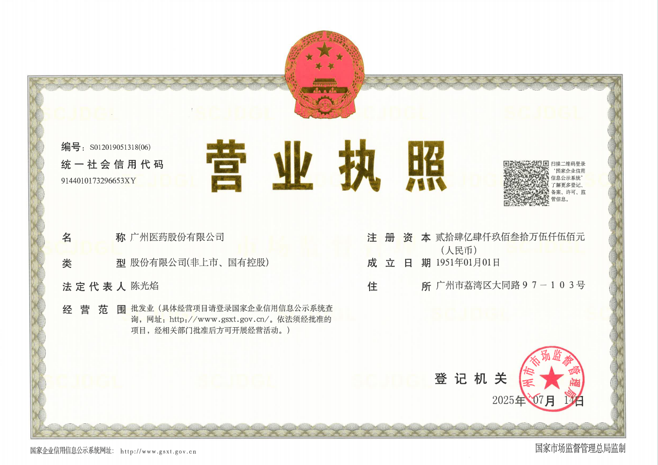 全國企業(yè)信用信息公示平臺(tái)鏈接地址:廣州醫(yī)藥股份有限公司